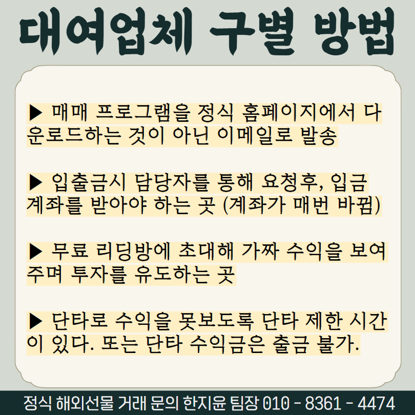 입출금 사기 문제와 차트조작이 가능한 프로그램을 사용해 금전적인 피해자 속출하니 주의하셔야 합니다.