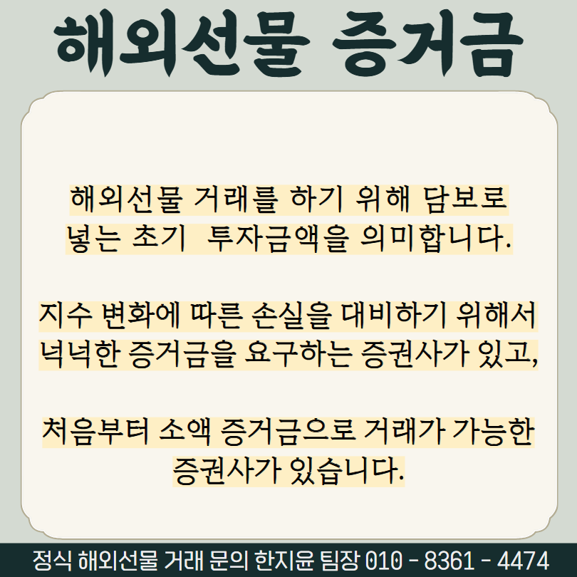 증거금이란? 해외선물 거래를 하기 위해 담보로 넣는 초기 투자금액을 의미합니다.