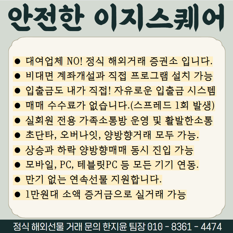 정식 해외선물 거래소 이지스퀘어에서는 1만원대 소액증거금 부터 실거래가 가능합니다.
