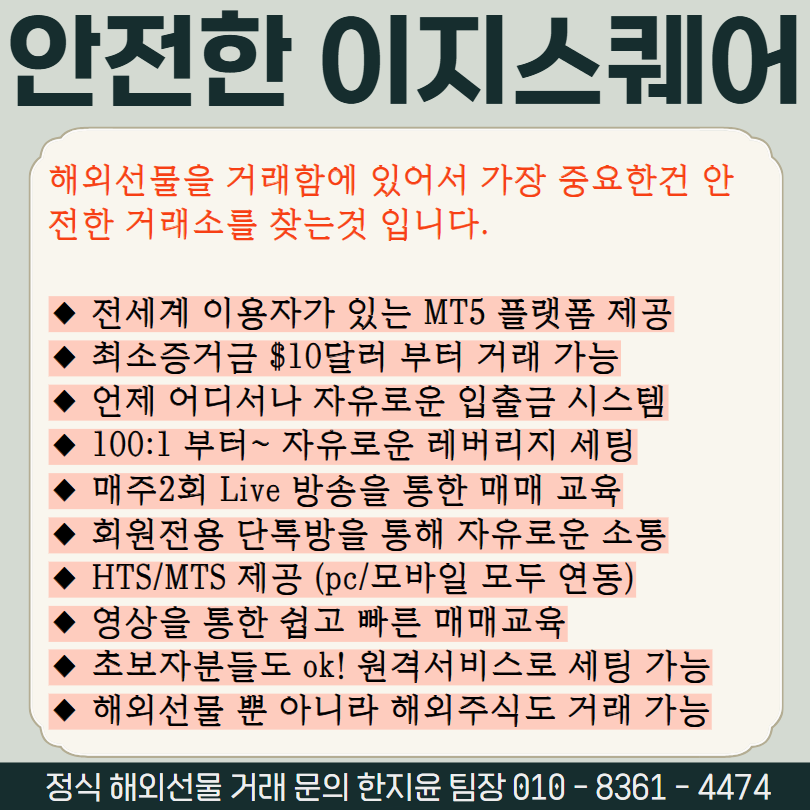 = 해외 라이센스를 발급받은 정식 해외선물 증권 거래소 ez스퀘어 에서는 1만원대 저렴한 증거금과, 수수료 혜택으로 부담없이 매매 할 수 있습니다.
