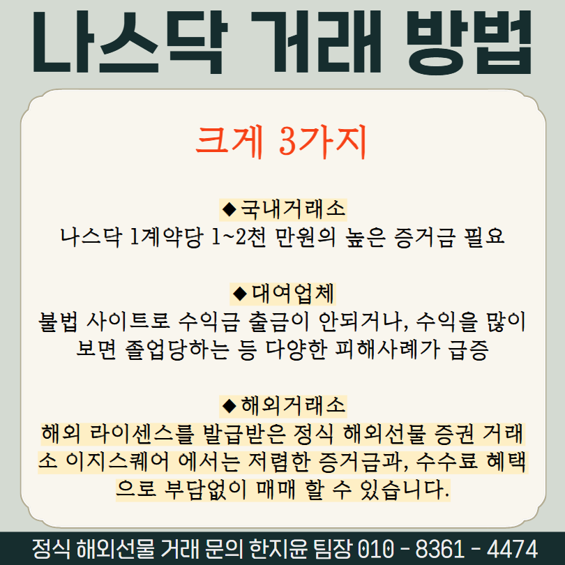 안녕하세요 해외지수거래 및 나스닥, 미니나스닥 전문 한지윤 팀장입니다.
