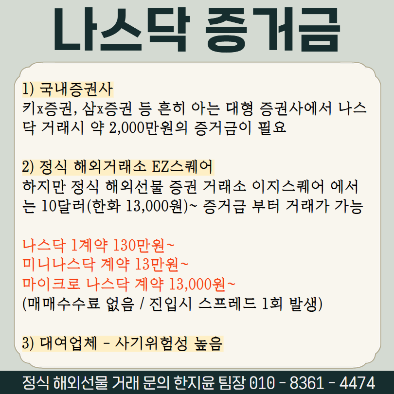 = 나스닥 1계약당 1~2천 만원의 높은 증거금이 필요합니다.
