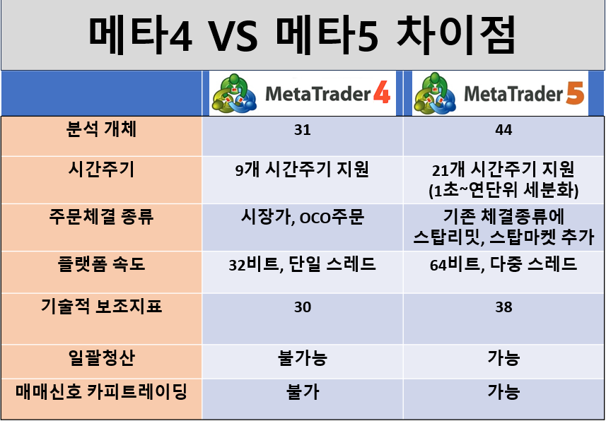 위의 표에서 정리했다시피 메타5는 메타4의 상위버전 인데요.