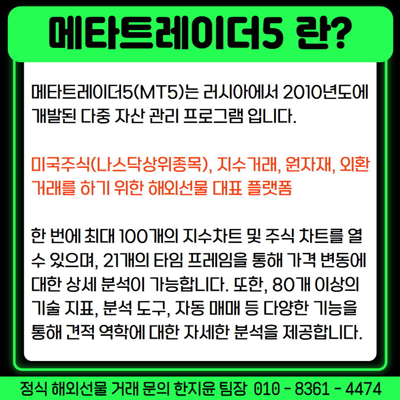 오늘은 전세계에서 해외선물거래에 쓰이고있는 대표 프로그램인 메타5에 대해서 알려드릴건데요