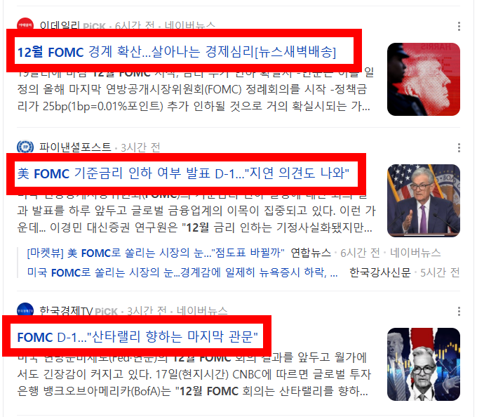 "국내 금융업계에선 오는 19일 올해 마지막 FOMC 결과 발표를 앞두고 기준금리를 0.25% 인하할 가능성도 배제하지 않고 있다."