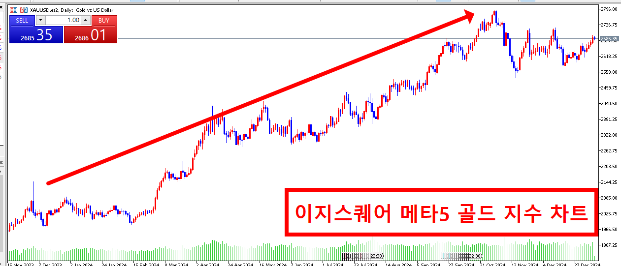 골드 지수는 전세게적으로 대표적인 안전 자산 중 하나로 꾸준한 우상향을 하고 있는 지수 중 하나입니다.