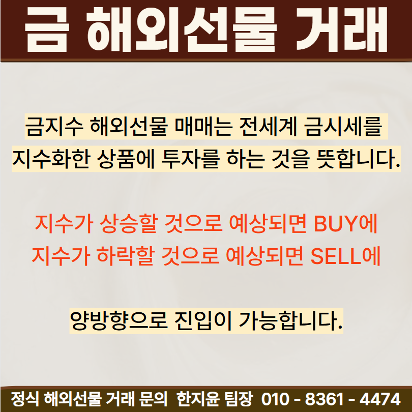 골드 지수 선물매매는 전세계 금시세를 지수화한 상품에 투자를 하는 것을 뜻합니다. 상승뿐 아니라 하락에도 매수가 가능하기 때문에 가격이 오르든 떨어지든 상관없이 이익실현이 가능한데요