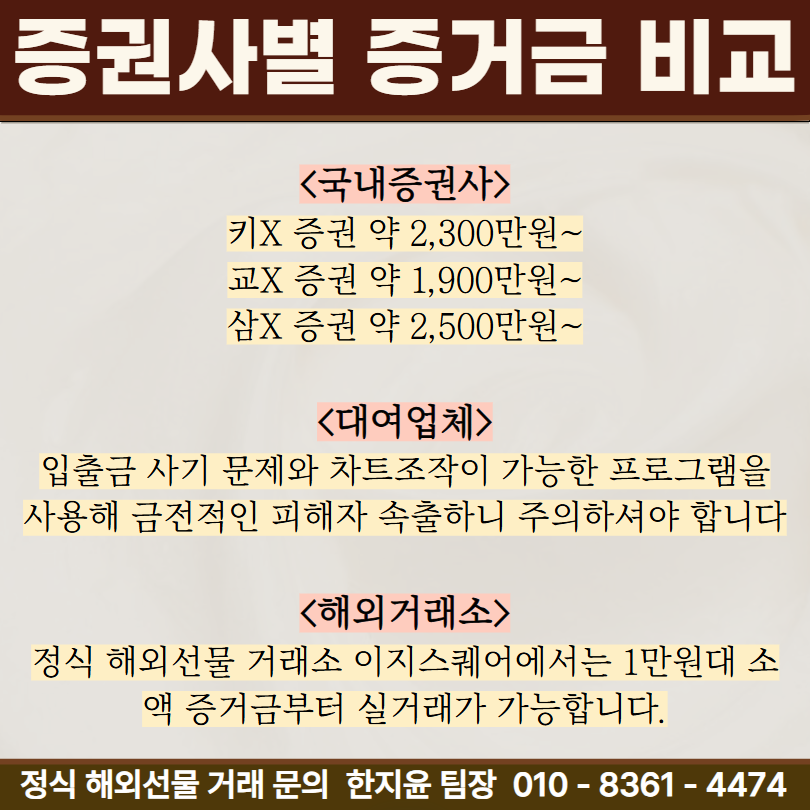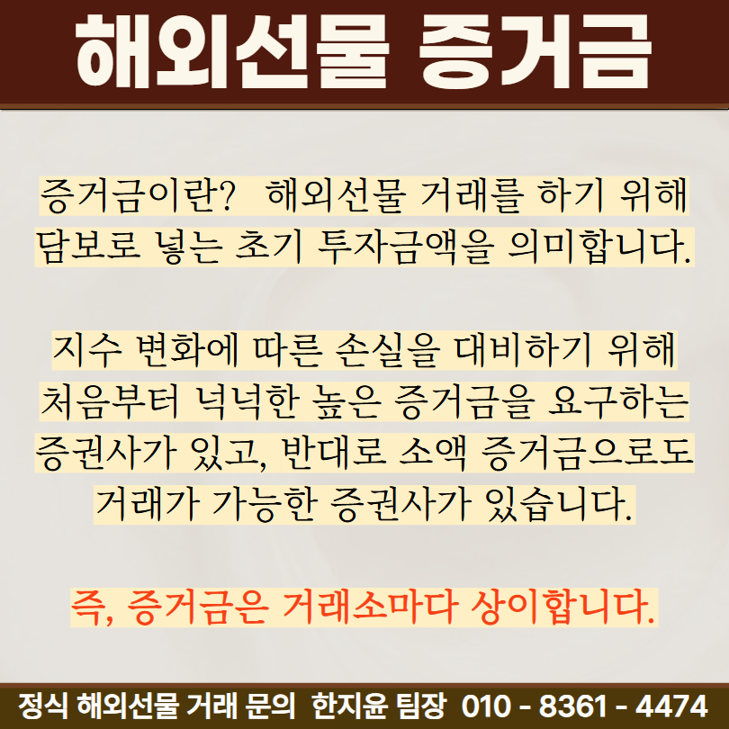 지수 변화에 따른 손실을 대비하기 위해 처음부터 넉넉한 높은 증거금을 요구하는 증권사가 있고, 반대로 소액 증거금으로도 거래가 가능한 증권사가 있는데요.