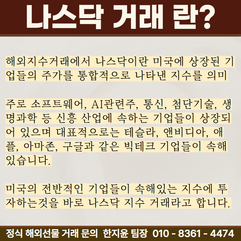안녕하세요 항셍, 나스닥 전문 해외지수거래 한지윤팀장 입니다.