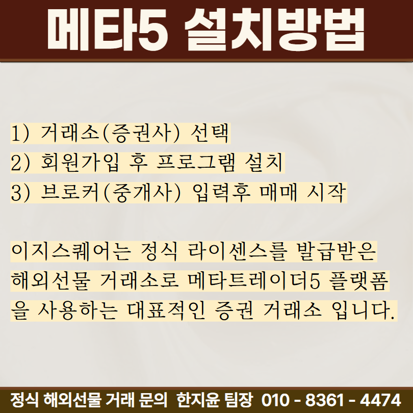 메타5 설치 및 사용방법 또는 해외선물 시작 방법이 궁금하신 분들은 해외지수거래 전문 한지윤팀장님에게 언제든 편하게 카톡/전화/문자 주세요^^