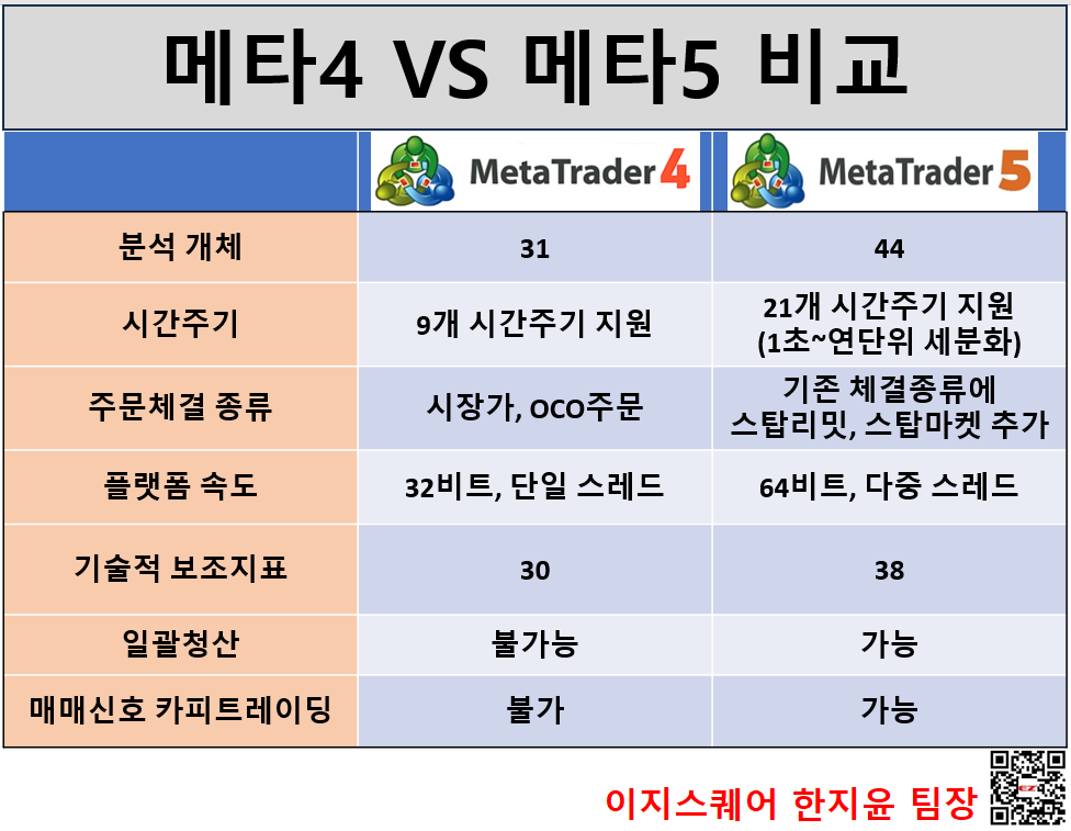 즉 MT5는 기존 MT4의 업그레이드 버전이라고 생각하시면 됩니다.