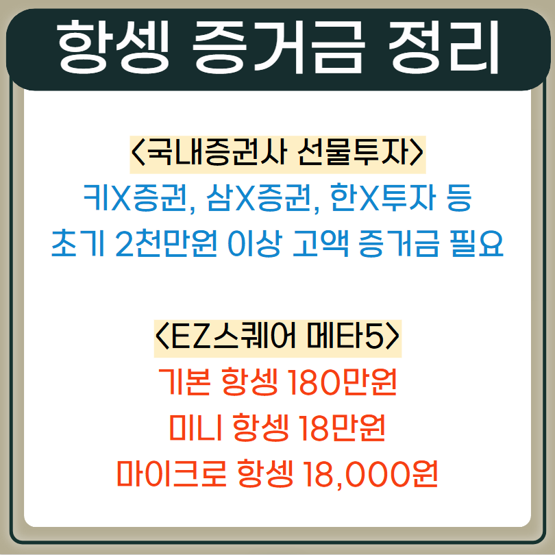 키X증권, 삼X증권, 한X투자 등 메이저 거래소는 초기 2천만원 이상 고액 증거금이 필요합니다.