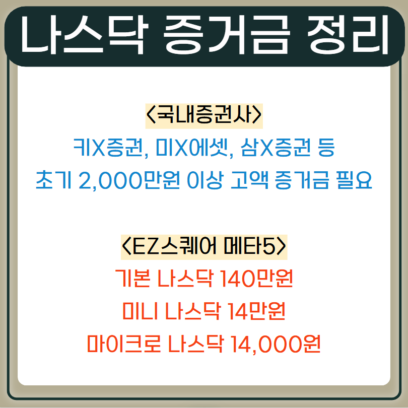 대형 증권사들은 초기 약 2,000만원 이상 고액 증거금이 필요합니다.