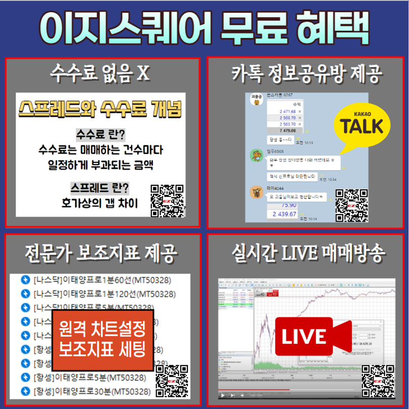 EZ스퀘어는 MT5에 정식 등재된 해외거래소로 매매수수료 없이 거래하실 수 있다는 점이 가장 큰 장점인데요.