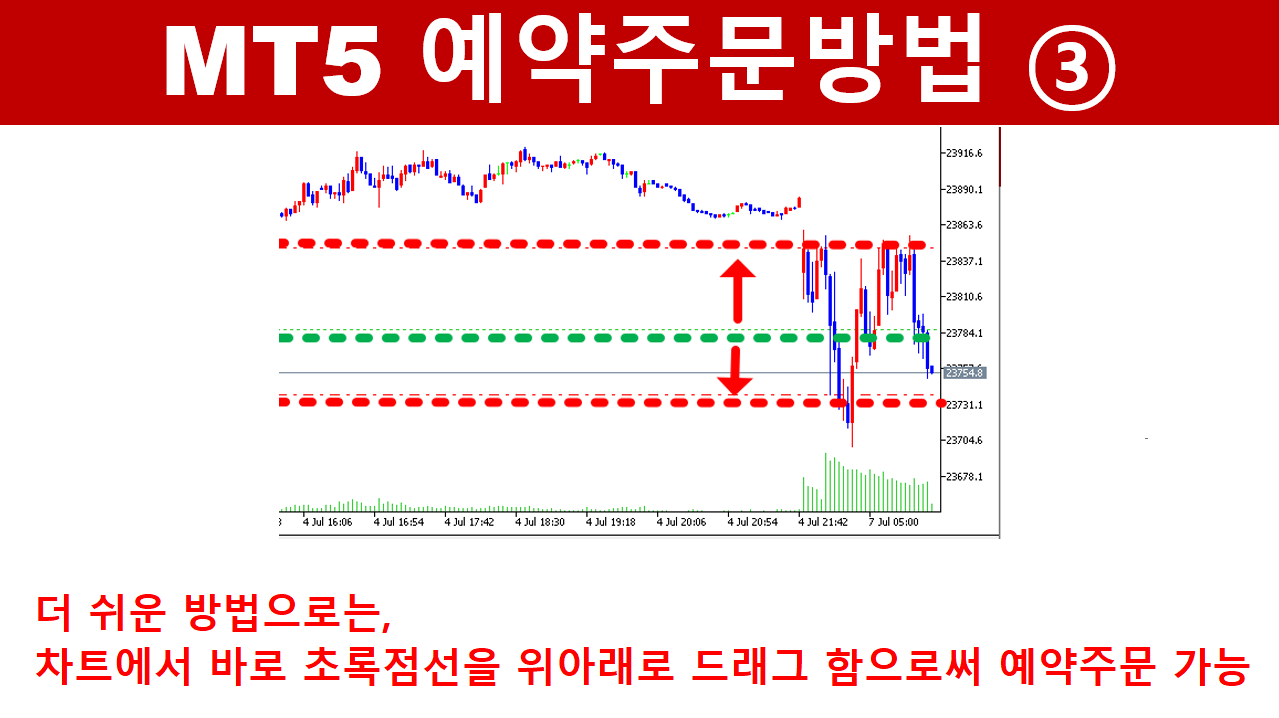 초록점선을 위아래로 드래그 함으로써 예약주문이 가능한데요.