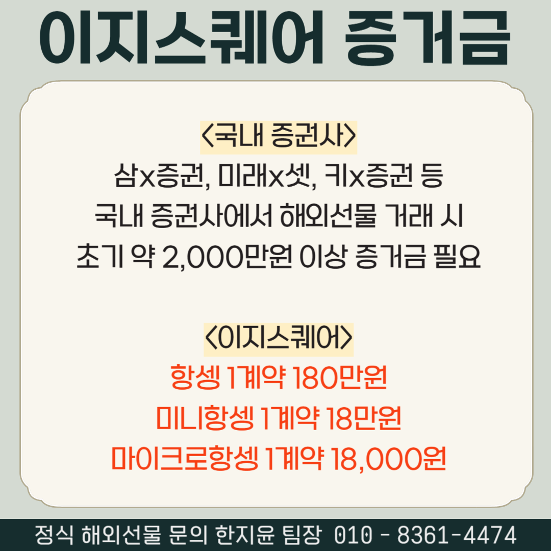 일반적으로 해외선물투자를 떠올리면 국내증권사의 높은 초기 비용(증거금)을 생각하시곤 하는데요