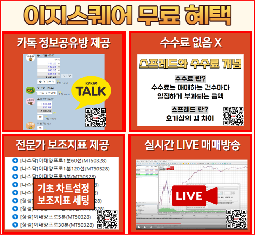 수수료 부담이 없는 이지스퀘어 MT5 에서 거래해보시는 것을 권장드리며 그 밖의 다양한 정보를 제공받으실 수 있습니다.