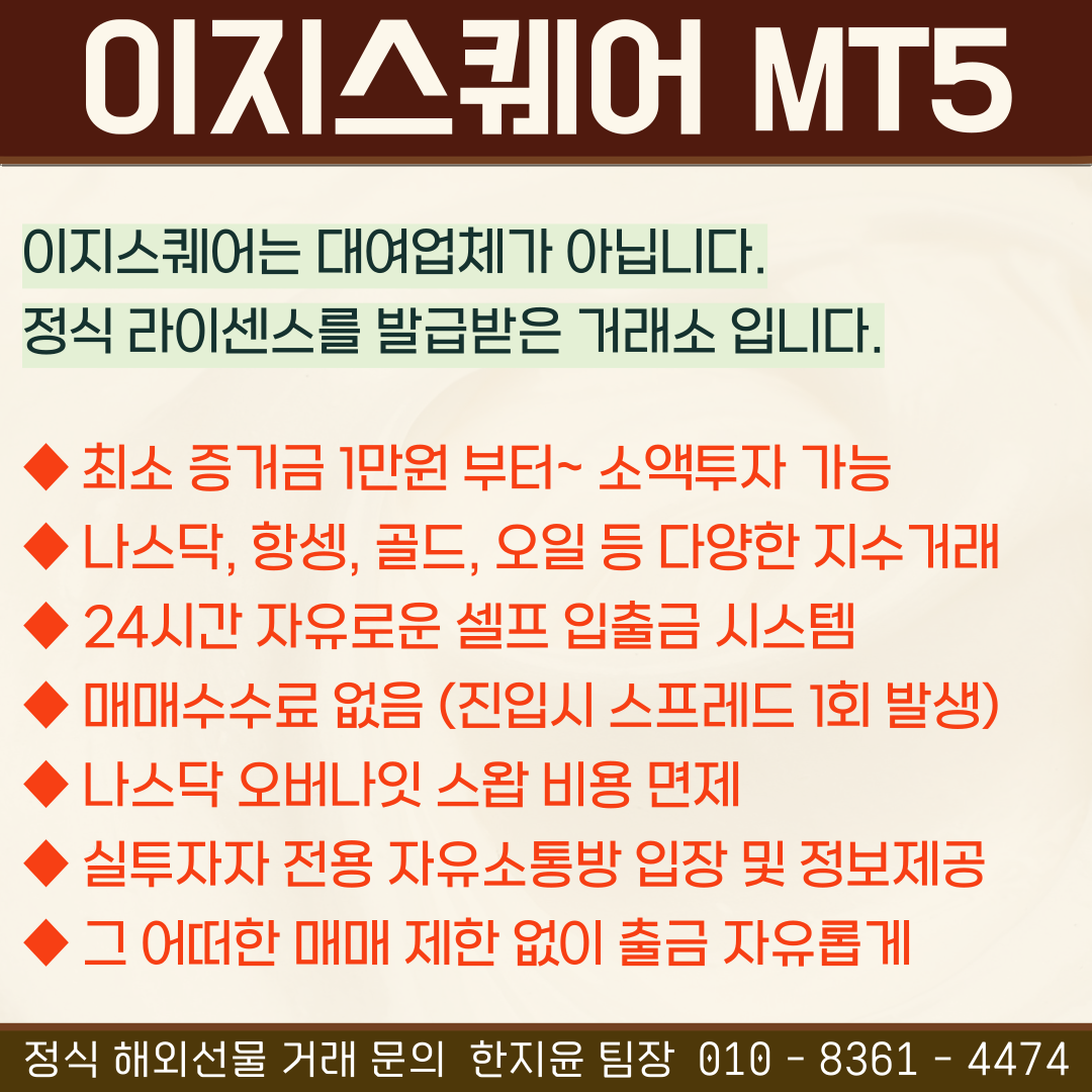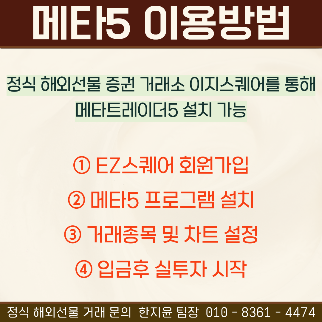 정식 해외선물 증권 거래소 이지스퀘어를 통해 메타5 설치가 가능하며, 한지윤팀장을 통해 사용방법 1:1 교육도 받아보실 수 있는데요