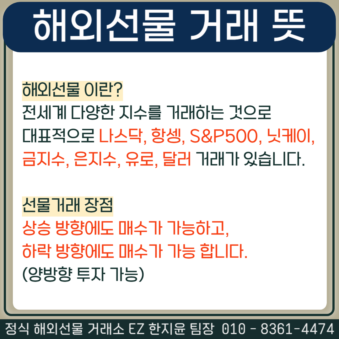선물투자란 전세계 다양한 지수를 기반으로 상승할지? 하락할지? 를 예측해 거래하는 상품입니다.
