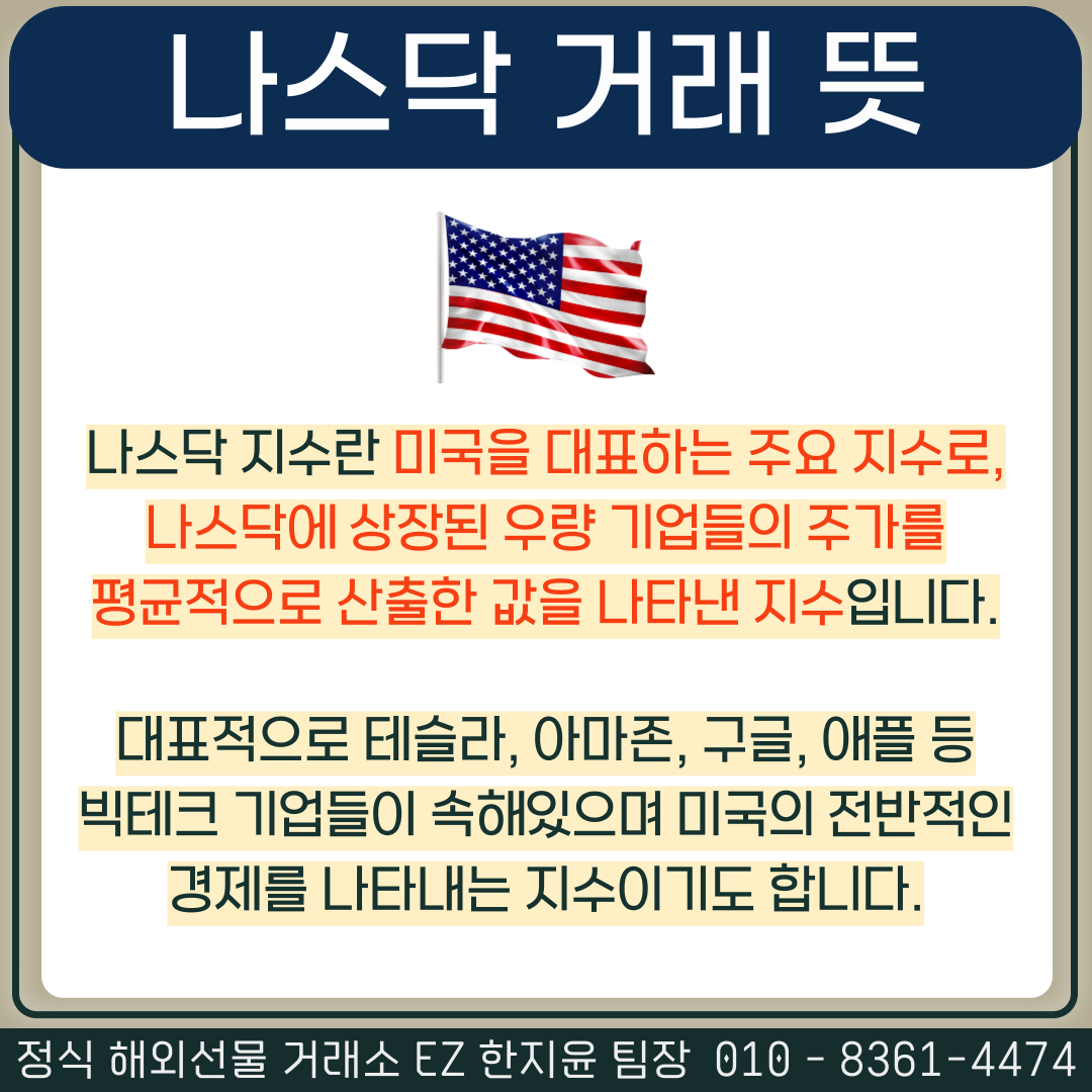 대표적으로 테슬라, 아마존, 구글, 애플 등 빅테크 기업들이 속해있기 때문에 세계 경제를 좌지우지 하는 지표이기도 합니다.