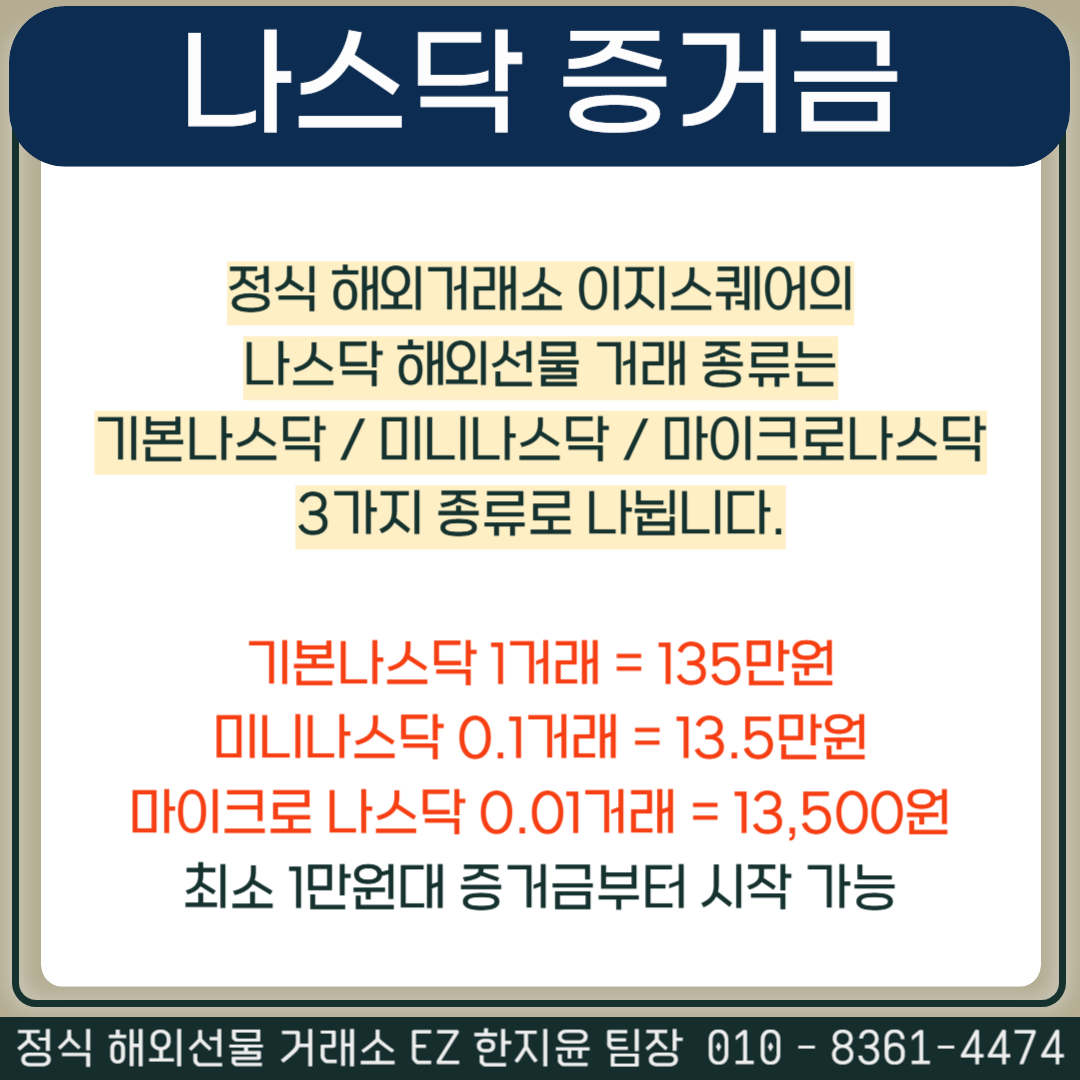 키X증권 같은 국내증권사에서 해외선물 거래시 나스닥 1계약에 최소 2,000만원 이상 증거금을 예치해야 합니다.