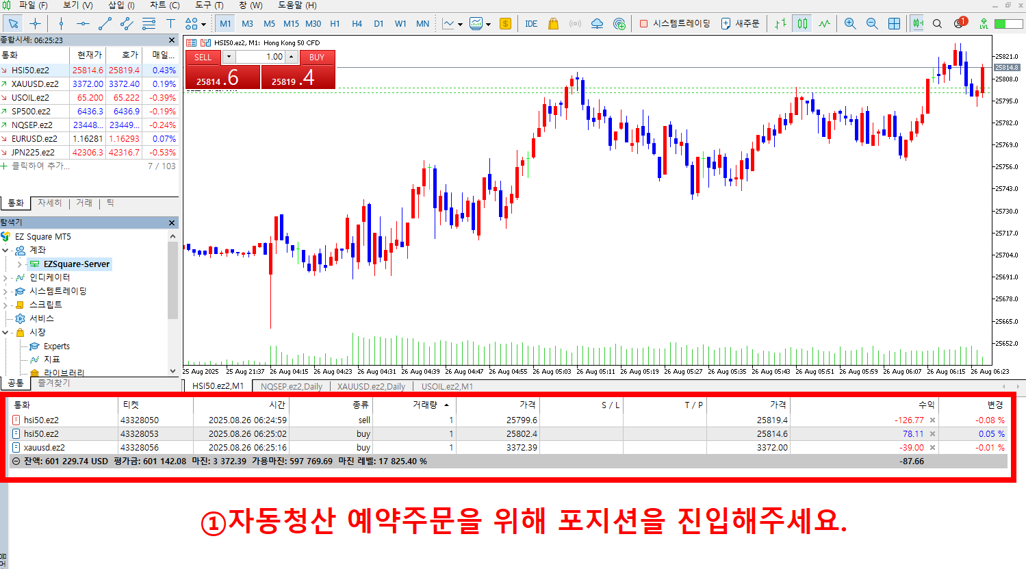 메타5는 기본적인 주문기능 외에도 예약주문, 자동청산, 지정가주문 등 다양한 기능을 갖추고있는 전문적인 해외선물 프로그램 인데요