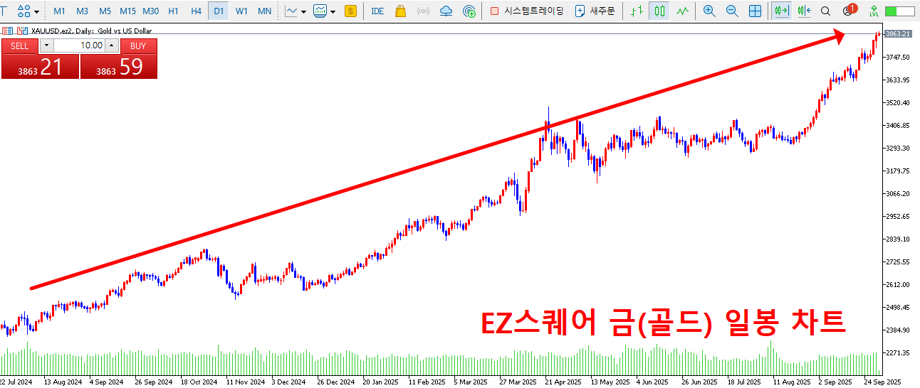 정식 해외선물 증권 거래소 EZ스퀘어의 골드 지수 일봉 차트 사진입니다.