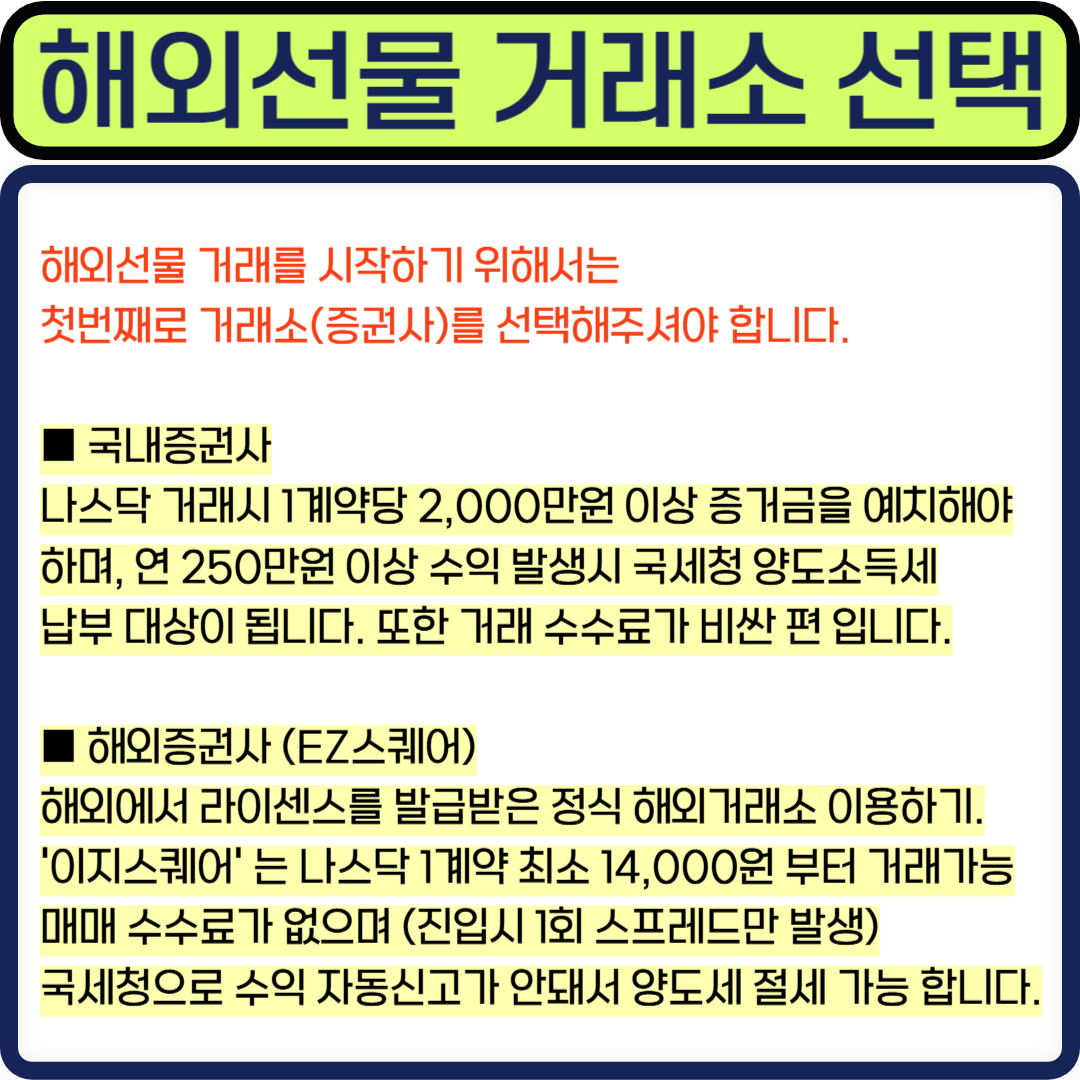 해외선물 거래를 시작하기 위해서는 첫번째로 거래소(증권사)를 선택해주셔야 합니다.