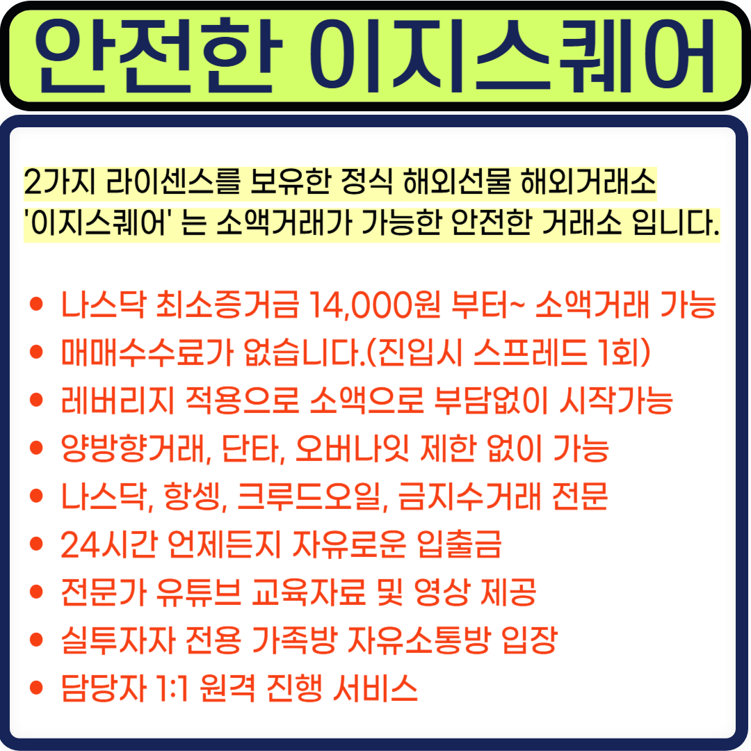 2가지 라이센스를 보유한 정식 해외선물 해외거래소 '이지스퀘어' 는 소액거래가 가능한 안전한 거래소 입니다.