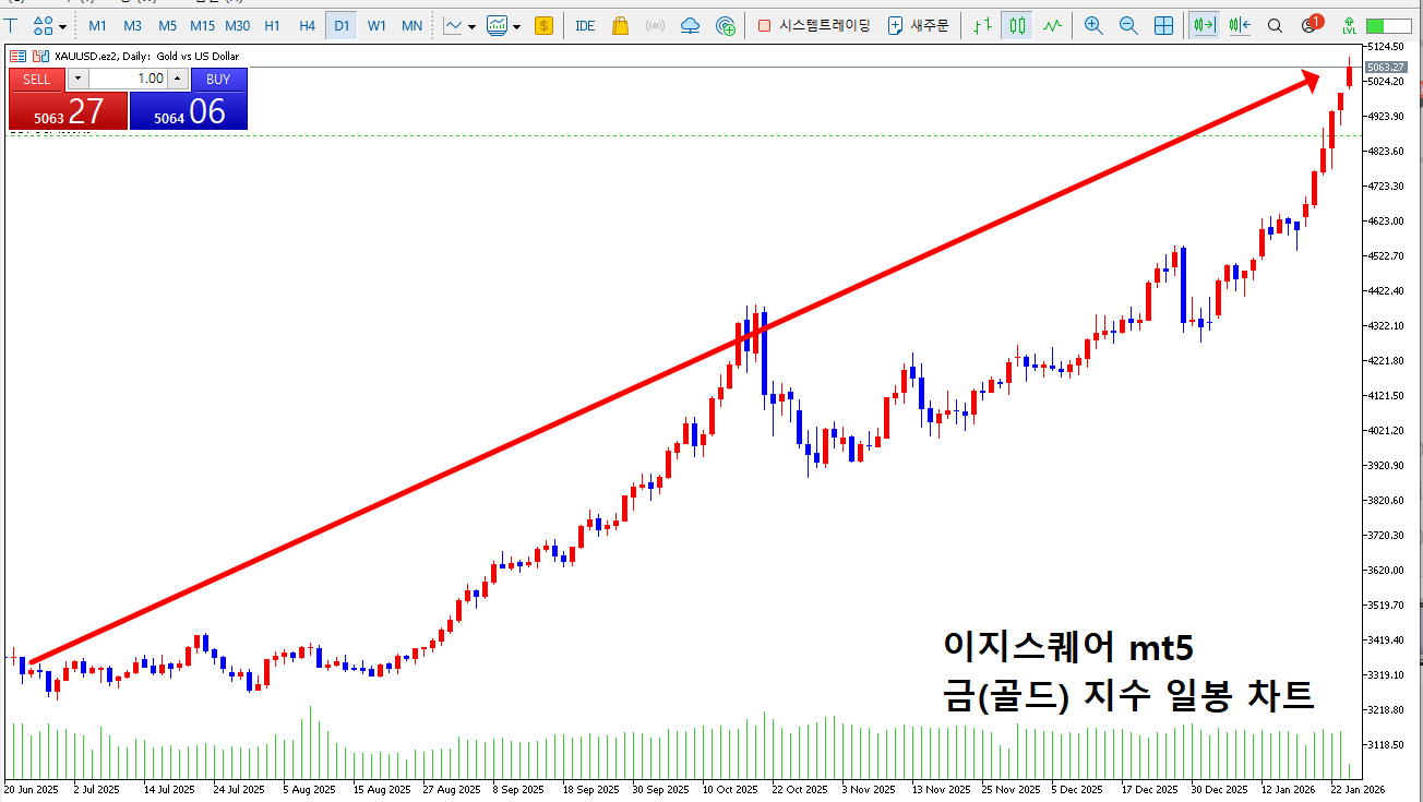 정식 해외선물 증권 거래소 '이지스퀘어' 의 금 지수 일봉 차트 입니다.