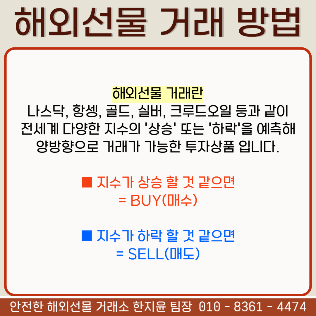 주식은 지수가 상승 해야지만 수익을 보는 구조이지만, 해외선물은 하락 방향 으로도 진입이 가능해 양방향으로 거래가 가능합니다. (상승, 하락 방향 동시에 진입도 가능)