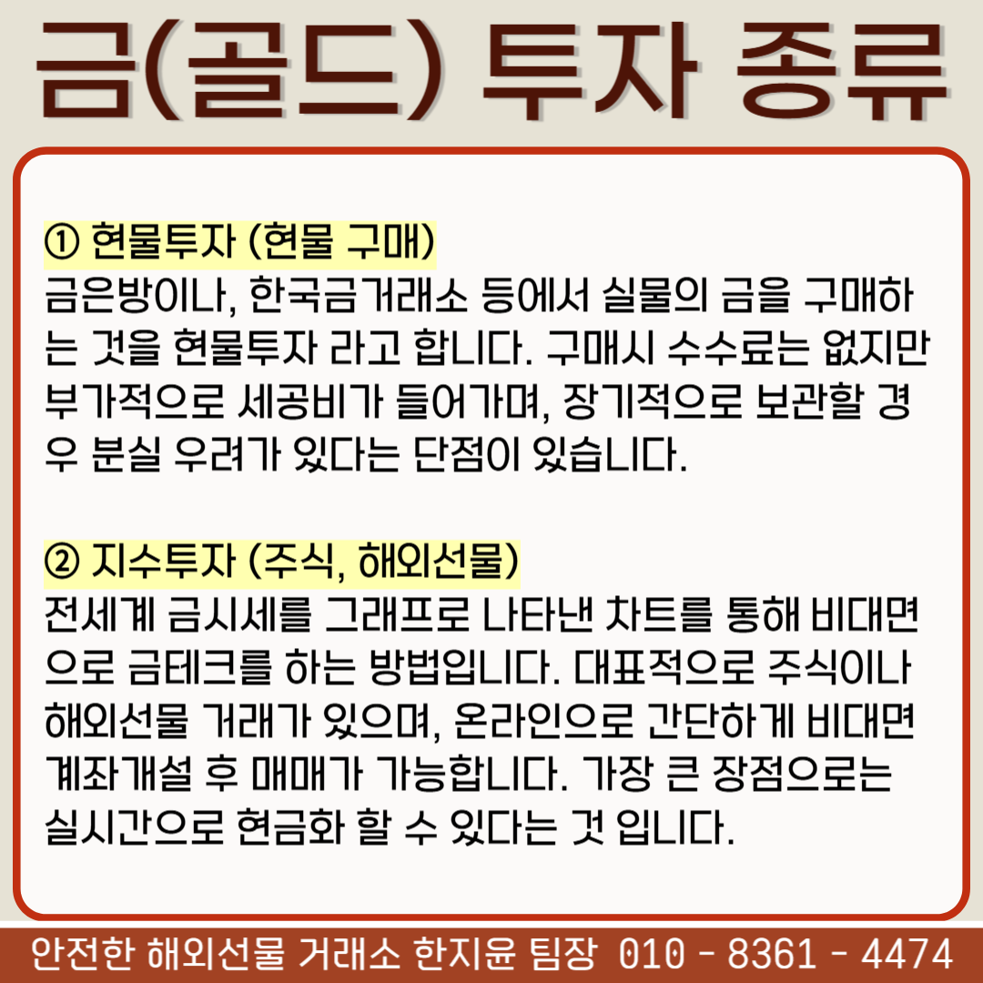 여전히 많은 분들이 금투자 종류에 관심을 갖는게 아닐까 싶습니다.