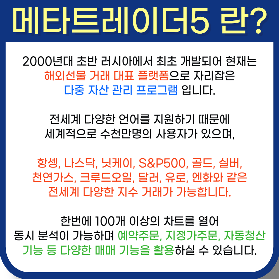 지수거래 시 세계적으로 쓰이는 대표 프로그램인 만큼 더욱 업그레이드된 보조 기능들이 추가된 신형 버전이라고 생각하시면 됩니다.